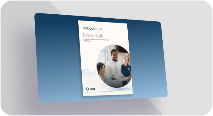 HUB Nonprofit When you partner with us, you’re at the center of a vast network of experts who will help you reach your goals. For more information on how to manage your insurance costs, reduce your risk and take care of your employees, talk to a HUB nonprofit insurance specialist. $550M in commercial insurance premium brokered by HUB 50,500 insurance policies managed 20,000 nonprofit clients Stay up to date Subscribe to receive risk and insurance insights and event invitations throughout 2025. Subscribe hubinternational.com