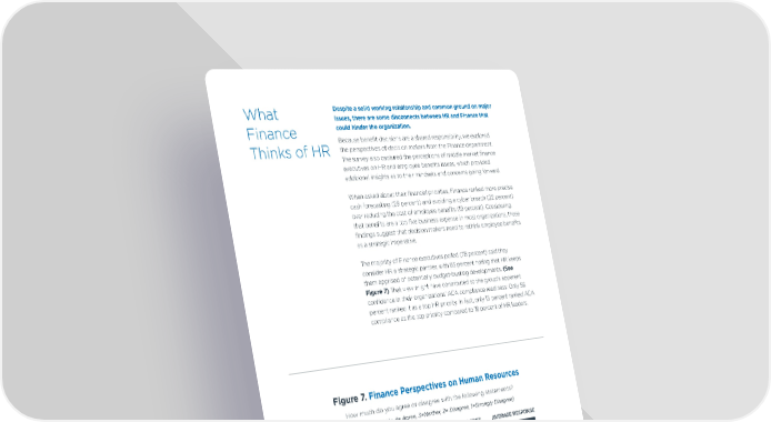 What Despite a solid working relationship and common ground on major issues, there are some disconnects between HR and Finance that Finance could hinder the organization. Because benefit decisions are a shared responsibility, we explored Thinks of HR the perspectives of decision makers from the Finance department. The survey also captured the perceptions of middle market finance executives on HR and employee benefits issues, which provided additional insights as to their mindsets and concerns going forward. When asked about their financial priorities, Finance ranked more precise cash forecasting (29 percent) and avoiding a cyber breach (22 percent) over reducing the cost of employee benefits (19 percent). Considering that benefits are a top five business expense in most organizations, these findings suggest that decision makers need to rethink employee benefits as a strategic imperative. The majority of Finance executives polled (78 percent) said they consider HR a strategic partner, with 83 percent noting that HR keeps them apprised of potentially budget-busting developments. (See Figure 7) That view might have contributed to the group’s apparent confidence in their organizations’ ACA compliance readiness: Only 56 percent ranked it as a top HR priority. In fact, only 15 percent ranked ACA compliance as the top priority compared to 18 percent of HR leaders. Figure 7. Finance Perspectives on Human Resources How much do you agree or disagree with the following statements? (5=Agree strongly, 4= Agree, 3=Neither, 2= Disagree, 1=Strongly Disagree) AGREE AVERAGE RESPONSE MY HR DEPARTMENT KEEPS ME APPRISED OF EVERYTHING I 83% 4.1 NEED TO KNOW IN FINANCE THAT COULD IMPACT MY BUDGET I SUPPORT THE FUNDING OF NEW HR TECHNOLOGY/SOFTWARE 79% 4 TO MANAGE/REDUCE COMPLIANCE WITH ACA REPORTING I THINK OF OUR HR DEPARTMENT AS A STRATEGIC PARTNER 78% 4.1 I SUPPORT THE FUNDING OF NEW HR TECHNOLOGY/ 70% 3.9 SOFTWARE TO ENSURE COMPLIANCE WITH ACA REPORTING I DON’T EXPECT TO PAY ANY FINES/PENALTIES TO THE IRS DUE TO 70% 3.9 ACA REPORTING NON-COMPLIANCE FOR OUR FILING THIS YEAR AS A COST CENTER MY HR DEPARTMENT HAS COME IN ON BUDGET 70% 3.8 Research Report | Employee Benefits Barometer: SMB Perspectives and Priorities in an Era of Disruption 10