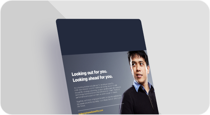Looking out for you. Looking ahead for you. As a leading broker and advisor for employee benefits, HUB International is committed to delivering solutions with thoughtful strategic planning, valuable professional services and technology-based solutions that enhance our clients’ financial performance and position them as an employer of choice. Together, we’ll tailor employee benefits solution to address the big issues you’re facing today - and those that will affect you in the future. hubemployeebenefits.com #LetsDoSomething This information is provided for general information purposes only. HUB International makes no warranties, express, implied or statutory, as to the adequacy, timeliness, completeness or accuracy of information in this document. This document does not constitute advice and does not create a broker-client relationship. Please consult a HUB International advisor about your specific needs before taking any action. Statements concerning legal matters should be understood to be general observations and should not be relied upon as legal advice, which we are not authorized to provide. © 2016 HUB International Limited. All rights reserved