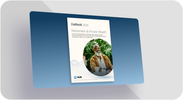 Resiliency Employers will focus on nuts-and-bolts issues in 2025 to keep their retirement plans healthy for the long term. Compliance and performing due diligence aren’t exciting Case Study topics, but adopting or maintaining best practices in both A private equity operation needed to areas will be key to avoid litigation, regulatory action and consolidate retirement programs for its cybercrime in 2025, helping ensure a retirement plan’s long-term future. different portfolio companies — otherwise, the PE firm would have to complete To start, there’s the trend of keeping former employees on expensive annual non-discrimination the retirement plan, even if they’re still working at another testing for each retirement plan. HUB was organization. It’s a small step to lower costs through able to untangle the thicket of regulatory economies of scale and stay resilient. However, there are risks such as administrative complexity and litigation requirements, merge the retirement programs that plan sponsors should carefully consider and manage and set the private equity firm up to leverage to ensure compliance and maintain the organization’s scale for the future. financial health. Another trend is the increase in the use of an “active/ passive mirror” approach to plan investments in which both active and passive investing options are represented investments, services and costs on a regular basis. in all asset classes. About 45% of defined contribution Pay ongoing attention to the plan’s IPS. Steer clear of plans reported a mirror approach in 2023, the highest ever. potential litigation risks related to high fees or inadvisable investment options and maintain standards for plan Critical fiduciary actions that most defined contribution participation levels as well as competitive investment plans are taking in 2024 include reviews of plan fees (74%) performance. and a review, update or implementation of the plan’s investment policy statement (IPS) (66%). Also noteworthy In addition, retirement plans — in concert with their plan is the increased use of open architecture for greater advisors — should review with their plan advisors any 11 service provider’s track record on cybersecurity, including transparency and flexibility. their standard practices and audit results and ensure they Cybersecurity presents another challenge to plan have risk management measures that will help keep the resiliency, which can affect individual accounts but attract plan sponsor safe. possible litigation or government action. The risk involved makes compliance essential. Any retirement plan needs to be run in accordance with the 11. Callan, “Focus on Plan Governance, and Continued Efforts to Rein in Fees,” April 24, 2024. plan document and to keep within the U.S. Department of Labor’s fiduciary governance standards. ERISA also requires that fiduciaries monitor, or review, their plan’s 5