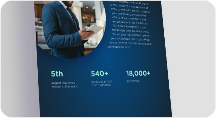 About HUB When you partner with HUB, you're at the center of a vast network of experts who will help you improve your profitability, enhance the vitality of your workforce and remain resilient into the future. For more information on how to manage your insurance costs, reduce your risk and take care of your employees, talk to your HUB advisor or visit hubinternational.com. We're here to help. 5th 540+ 18,000+ largest insurance locations across employees broker in the world North America hubinternational.com The information in this piece is solely for general information purposes and is not intended as tax or legal advice. We do not warrant the accuracy, completeness or usefulness of the information. We disclaim all liability and responsibility arising from any reliance placed on the information by you or anyone else who may be informed of any of its contents. This information may include content provided by other parties. All statements and/or opinions expressed in these materials, other than the content provided by HUB, are solely the opinions and the responsibility of those other parties and do not necessarily reflect the opinion of HUB. We are not responsible or liable for the content or accuracy of any materials provided by any other parties. 3030 HUB International North America 2025 Outlook Report | 30