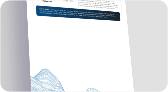 Personal Insurance Marketplace Rate Guide — U.S. 2025 Personal Coverage Insurance Rate Insights Guide Specialty: Much like the automobile market, specialty coverage lines will see an increase to offset losses driven by labor costs, parts and vehicle Motorcycle, RVs, +5% to +10% replacement expenses. Though parts and labor still affect severity, they Watercraft are not expected to drive significant rate increases like the auto market in which complex technology plays a larger and more costly role. NOTE: Rate is typically defined as the amount of money necessary to cover losses and expenses while providing an insurance company with a profit for a unit of exposure. Exposure refers to a business’ or individual’s susceptibility to various daily risks. Carriers evaluate the level of risk an insured faces in calculating insurance premiums. 9